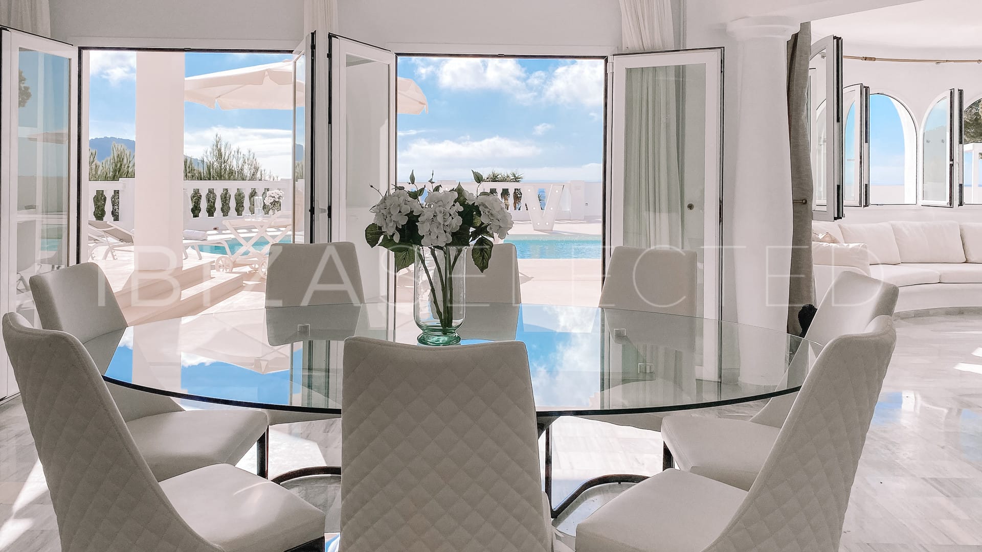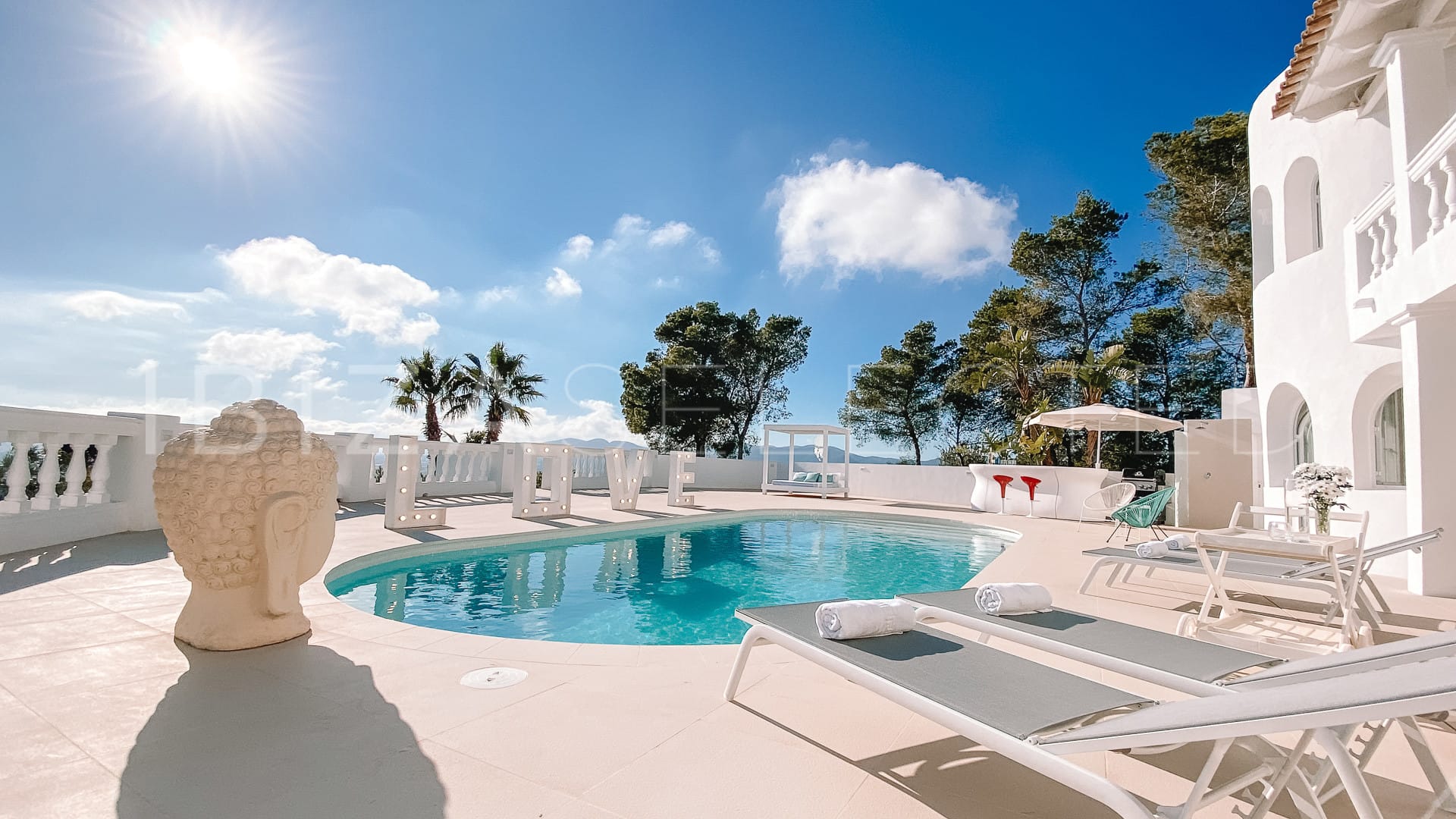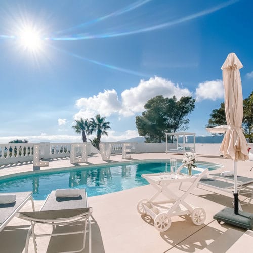 Villa The White Pearl is located in the Can Furnet urbanization, a secure area less than 10 minutes from Ibiza’s vibrant city centre. First-time visitors to the property are always amazed by the endless expanse of views. The perfectly chosen location of Villa The White Pearl means that sunrises and sunsets become a real natural spectacle.