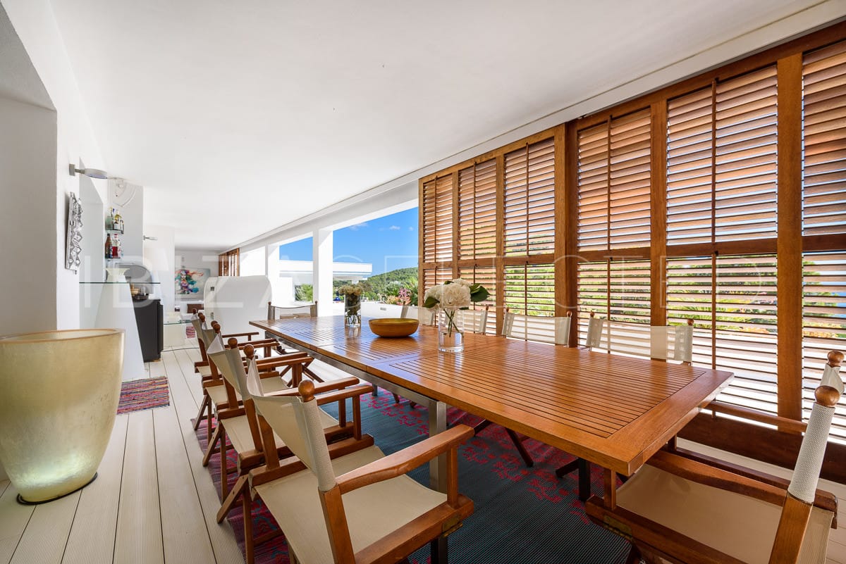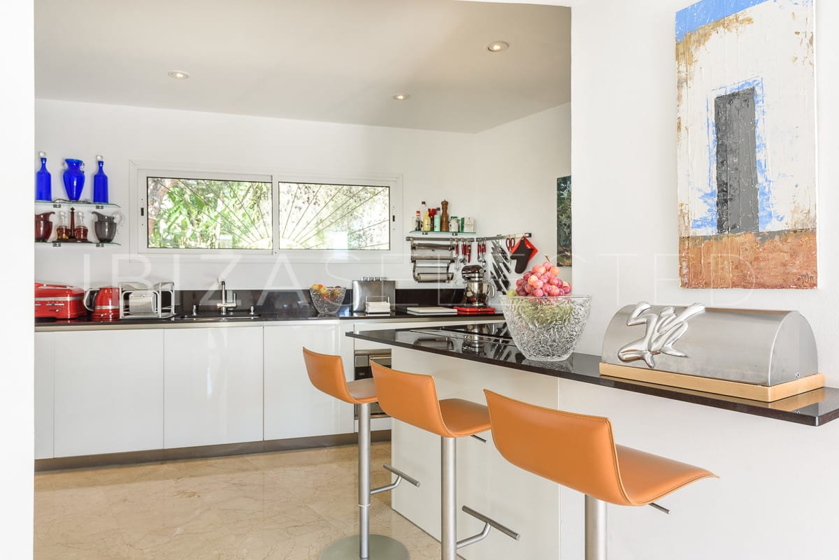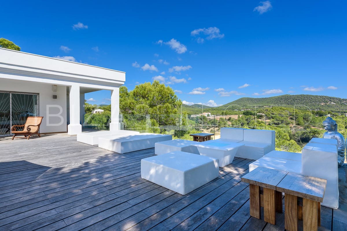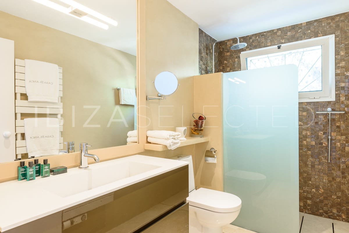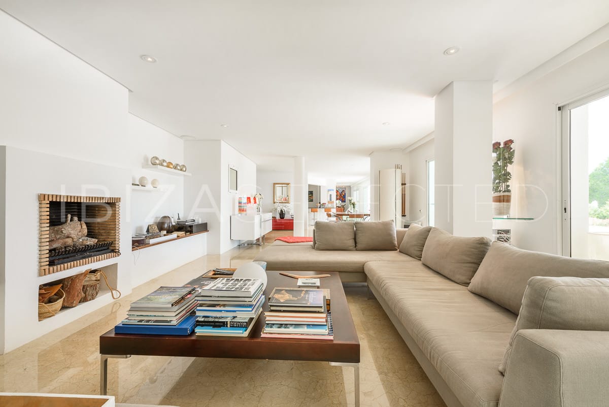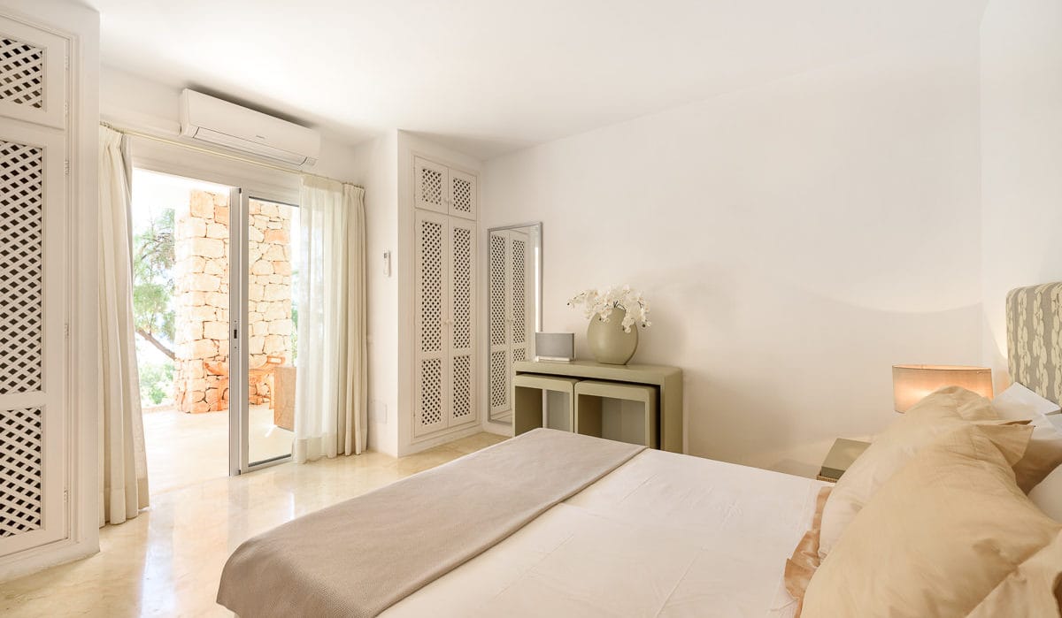 Villa Evelyn is an elegant and contemporary home located on a gorgeous hillside above Cala Jondal beach, famous for its Blue Marlin beach club. The pine-clad landscape drops onto the sparkling turquoise Mediterranean waters. Here you can relax in total privacy and absorb the outstanding views directly from the salt-water infinity pool as well as from any garden terrace spot. The large exterior terrace offers shaded seating and dining spaces, as well as a fully-equipped outdoor summer kitchen. A further shaded chill-out space is available on a wooden terrace built under the fragrant pine trees, or you can even venture up to the roof for a whole new set of sun-drenched entertaining spaces. Inside, elegant living areas stretch from the large open-plan lounge and dining area through to the well-equipped kitchen and the large terrace overlooking the pool. The four double bedrooms are all en-suite and incredibly spacious with a fresh, clean and bright finish as with the rest of the property.