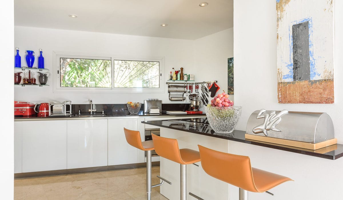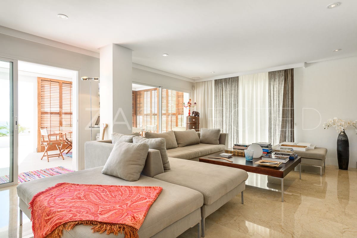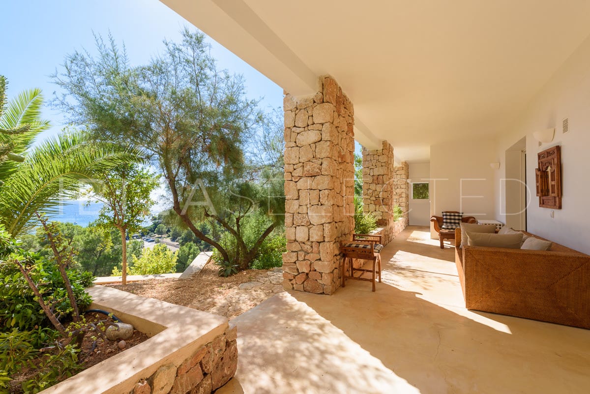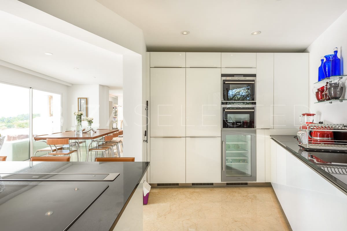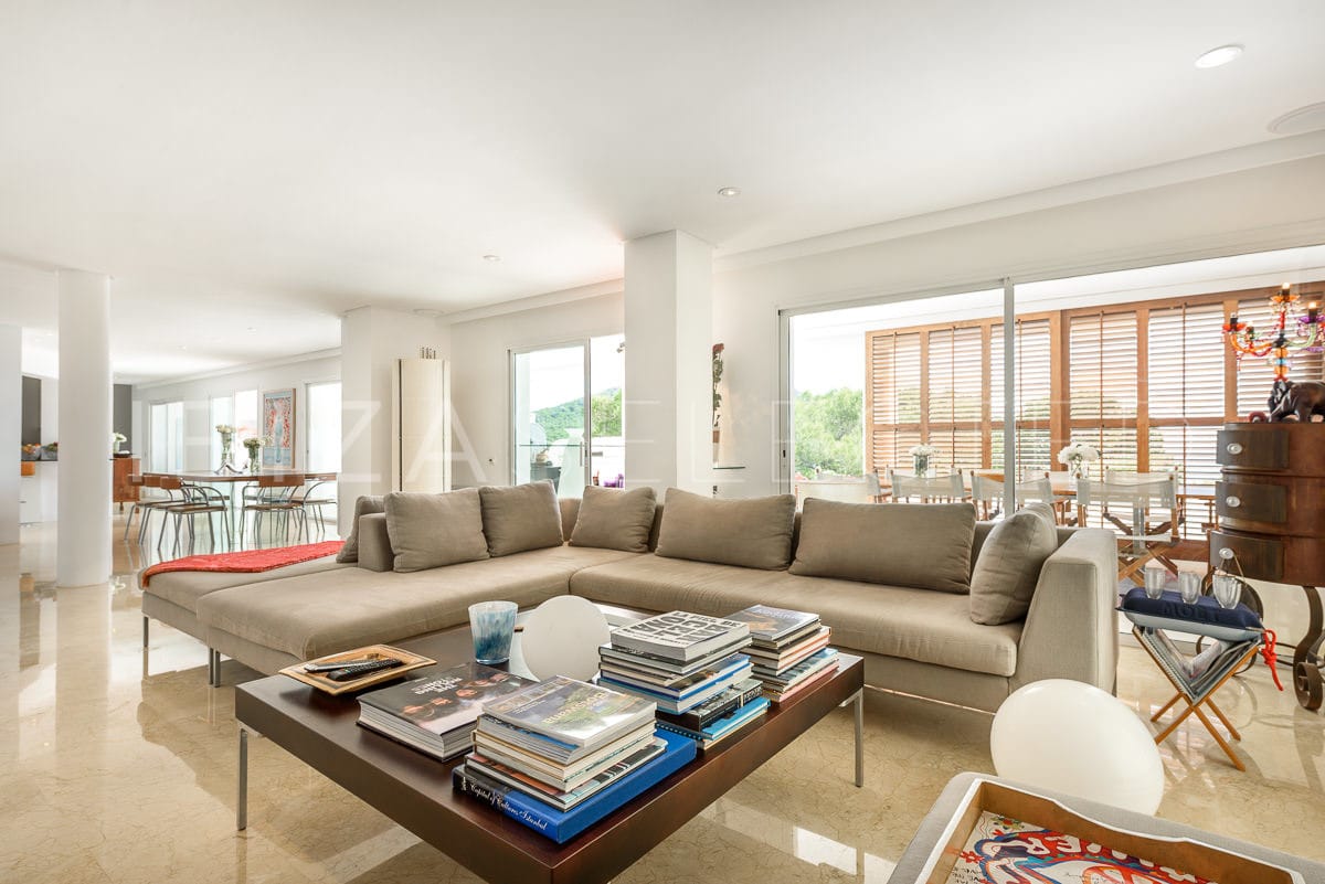 Villa Evelyn is an elegant and contemporary home located on a gorgeous hillside above Cala Jondal beach, famous for its Blue Marlin beach club. The pine-clad landscape drops onto the sparkling turquoise Mediterranean waters. Here you can relax in total privacy and absorb the outstanding views directly from the salt-water infinity pool as well as from any garden terrace spot. The large exterior terrace offers shaded seating and dining spaces, as well as a fully-equipped outdoor summer kitchen. A further shaded chill-out space is available on a wooden terrace built under the fragrant pine trees, or you can even venture up to the roof for a whole new set of sun-drenched entertaining spaces. Inside, elegant living areas stretch from the large open-plan lounge and dining area through to the well-equipped kitchen and the large terrace overlooking the pool. The four double bedrooms are all en-suite and incredibly spacious with a fresh, clean and bright finish as with the rest of the property.