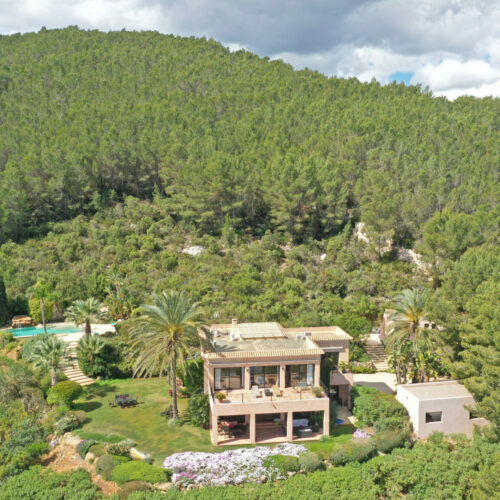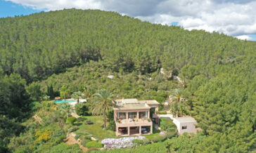 There are two houses on this plot totalling 410 m2 of living space plus a 50 m2 covered entrance hall over two floors. A total of 5 bedrooms, 5 bathrooms. Each bedroom has its own private terrace. First class construction quality, handmade terracota tiles in all rooms, antique marble in the bathrooms. All rooms have hot/cold air conditioning and underfloor heating. Plot up to the top of the mountain 35,000 m2 with many old natural stone terraces.