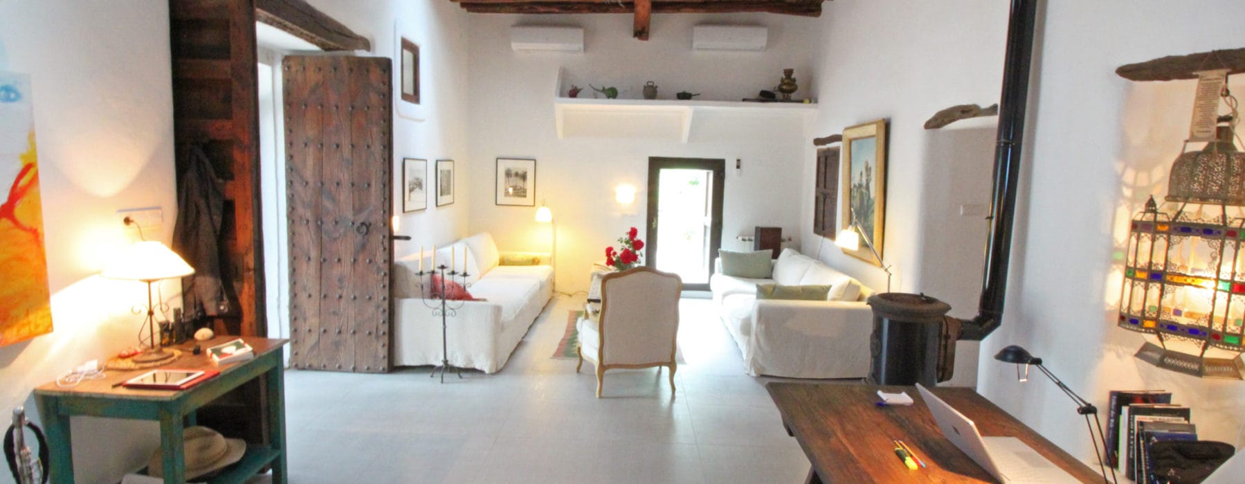 Surrounded by Mediterranean flora and fruit plantations, this 400m² villa is a peaceful sanctuary ideal for those seeking relaxation away from Ibiza’s busy tourist areas. Built in classic Moorish style, the finca features natural stone elements, authentic olive and sabina wood, and elegant rustic design.