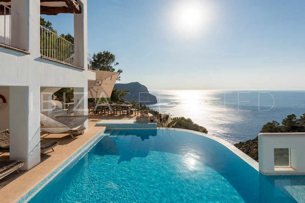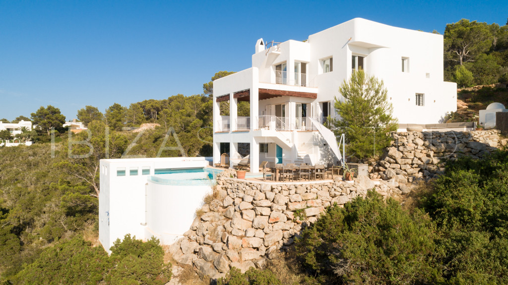 Villa Can Manen is a beautiful, modern three-story villa located in the quiet area of Na Xamena in the north of Ibiza. This corner of the island is secluded and exceptionally tranquil. The villa offers a private retreat with fabulous sea views and is situated near the Port of San Miguel.
