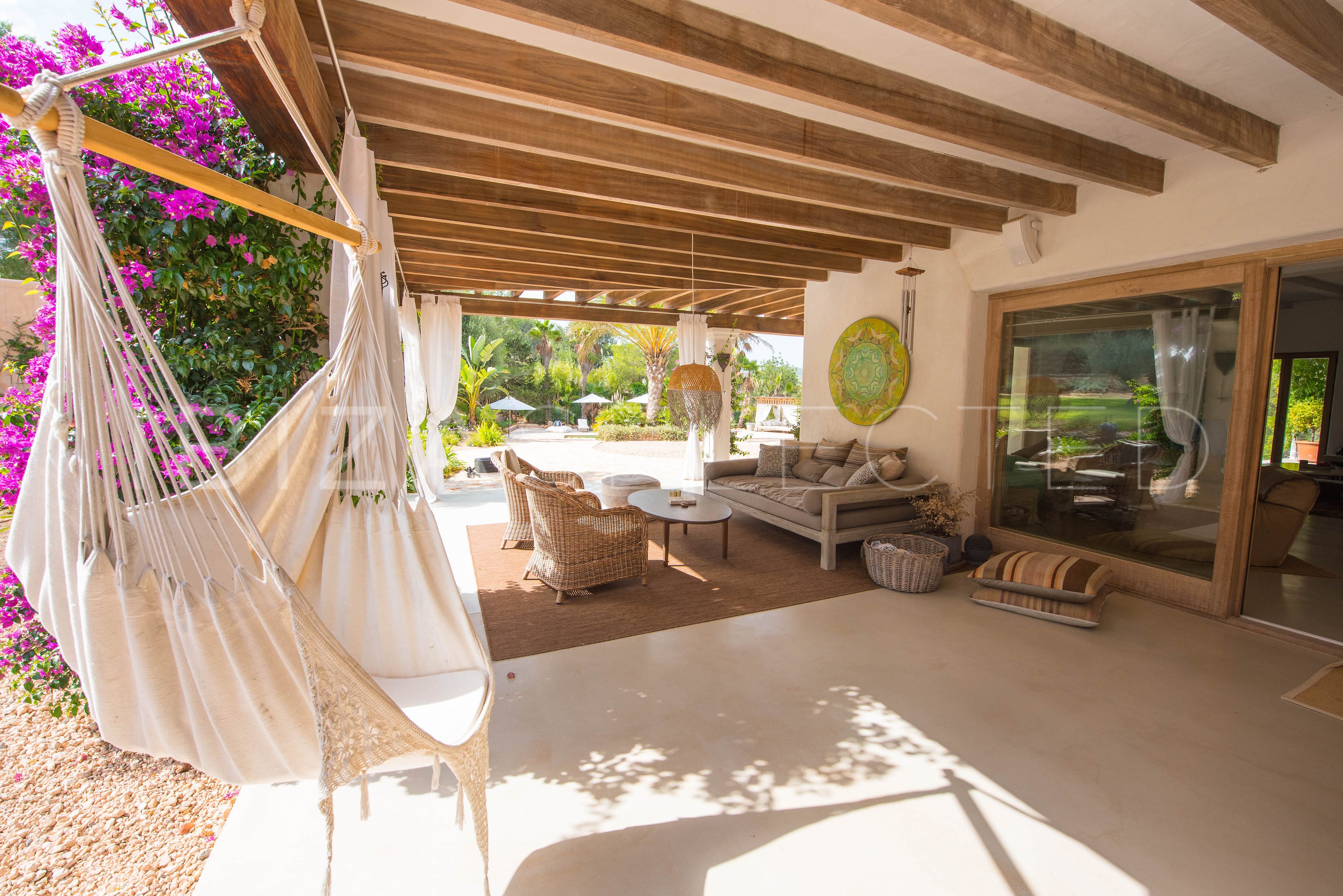 This beautiful villa (4 bedrooms) with guest house (1 bedroom) is located on a large plot with large lawn and beautiful pool area. All bedrooms are equipped with air conditioning. The pool area with different sun beds and a lounge is located directly at the villa and is open to the garden. Both the main building and the guest house have been decorated with great attention to detail and to the highest standard in beautiful natural tones, with great emphasis on luxury. The villa is an ideal retreat for your family and friends to relax with the added benefit of being centrally located on the island. In the outdoor area invites children a dream board, a beautiful wooden tree house and a playground to play. Furthermore, there are two Bali-Houses in the outdoor garden, which invite to rest at sunset.