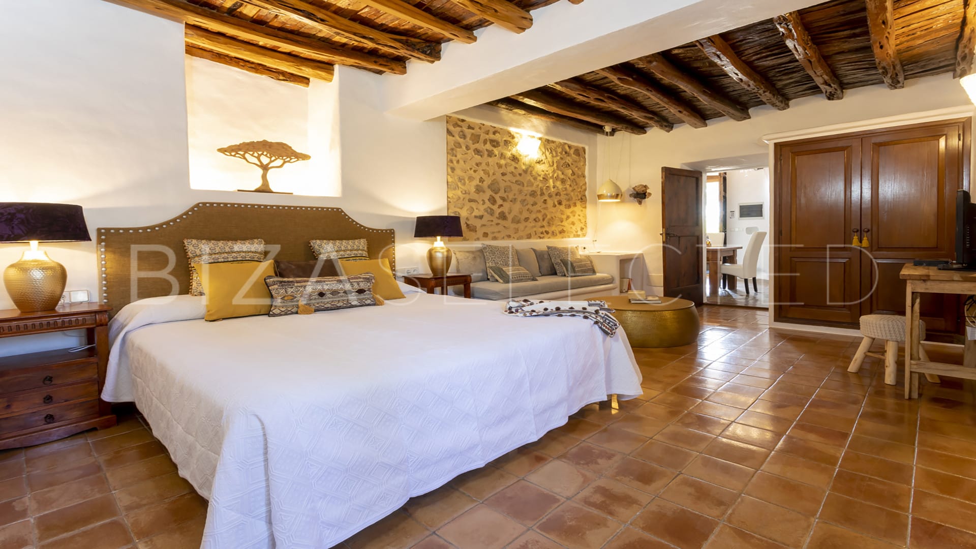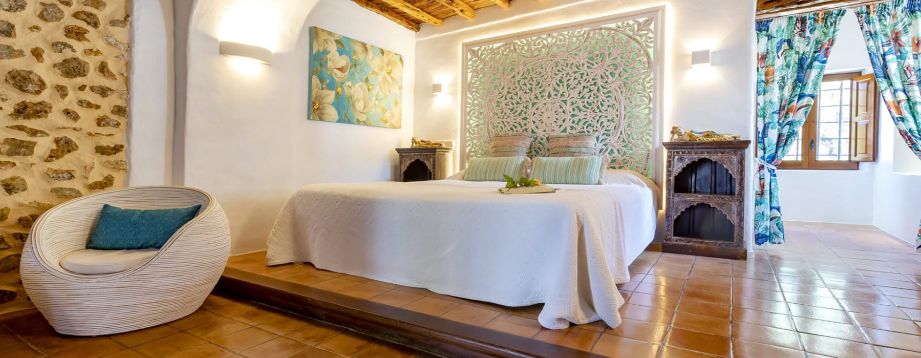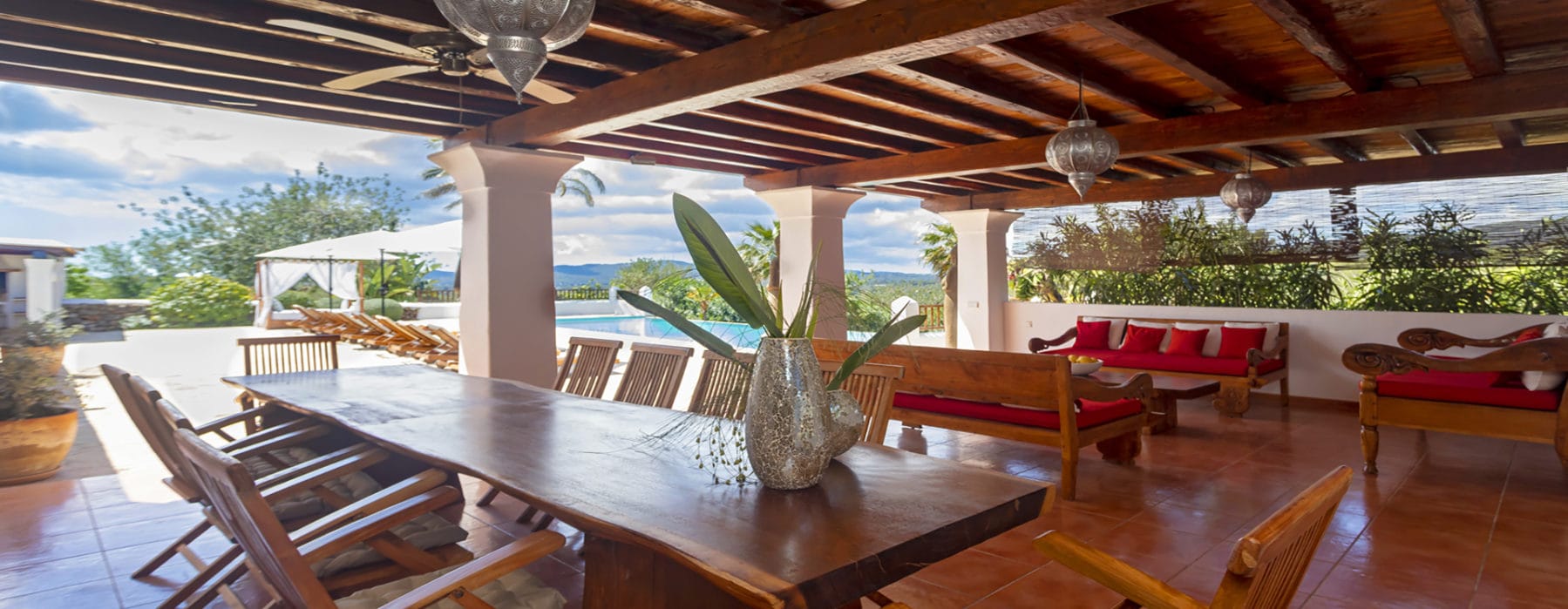 The villa is beautifully situated in the fields of the Morna Valley between Sant Carles and Sant Lorenzo. Nearby are many restaurants, the Atzaró Spa and the most beautiful beaches of the north of the island. The Villa Can Sitges is also suitable for large groups and families. In addition, the villa can also be combined with the Villa Morna (10 people) and Villa Can Xumeu (12 people).