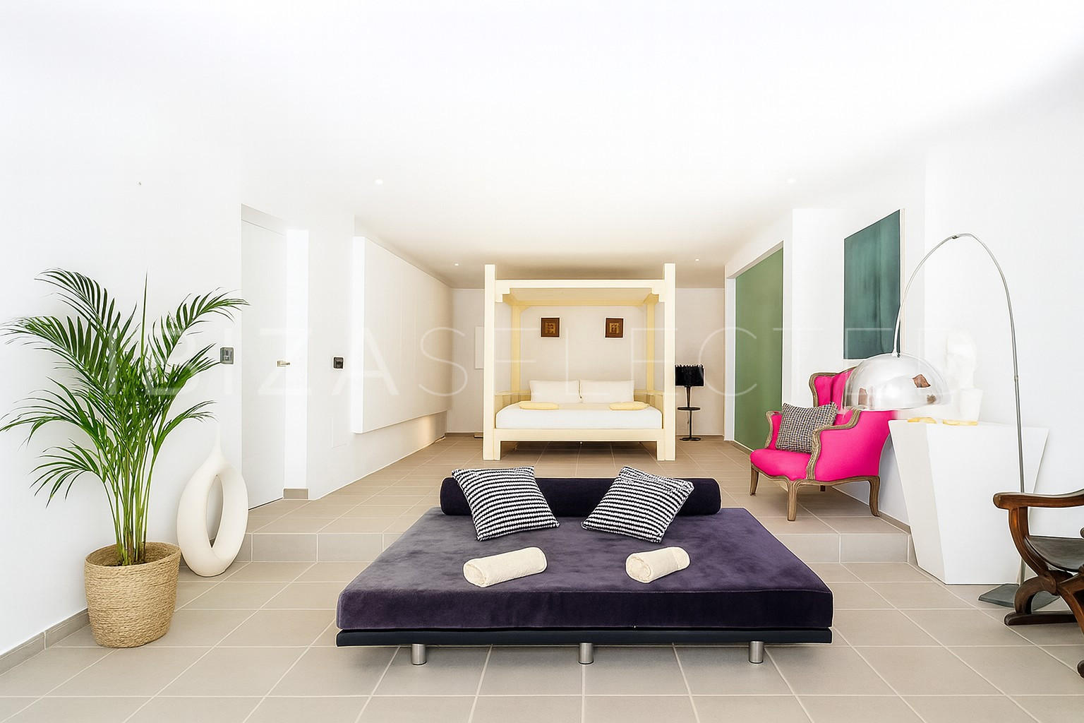 This exclusive private villa, Villa Contasol, sits in one of the island’s most sought-after locations. It is perfectly positioned near Ibiza’s top beaches and hotspots. You’re just 2 minutes from Cala Conta and 5 minutes from Cala Bassa. The property offers the ideal blend of tranquility and easy access to the best the island has to offer, being only 10 minutes from San Antonio and 20 minutes from Ibiza Town.